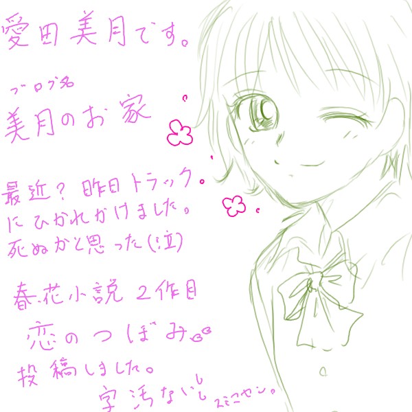 一応この落書きの子は本日投稿した小説の主人公野山つぼみのつもりです。