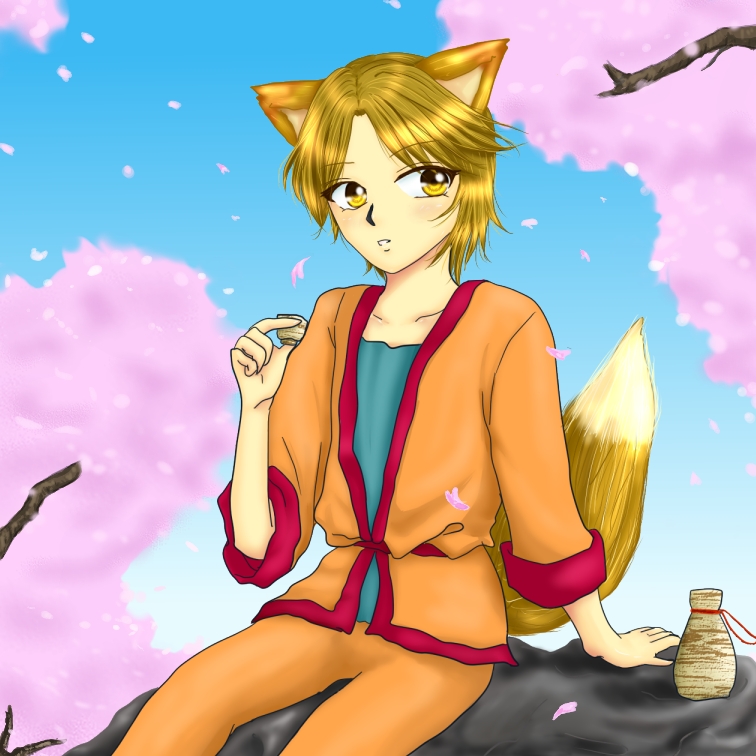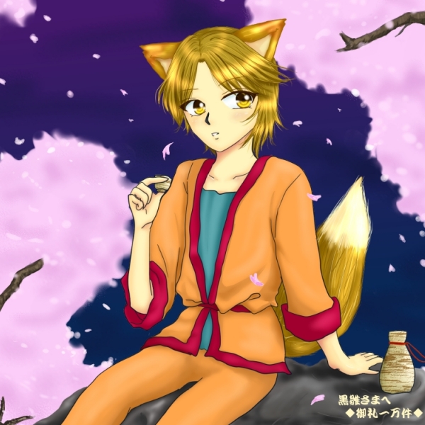 春っぽいということで、夜桜を楽しむ妖狐さんです。
