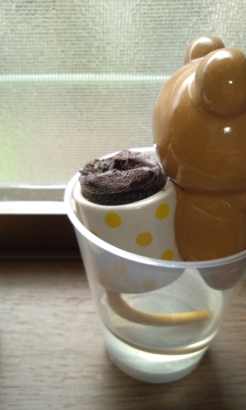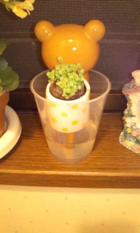 よ~~く見ると、一本だけ、緑の小さな双葉が見えるのです~♪