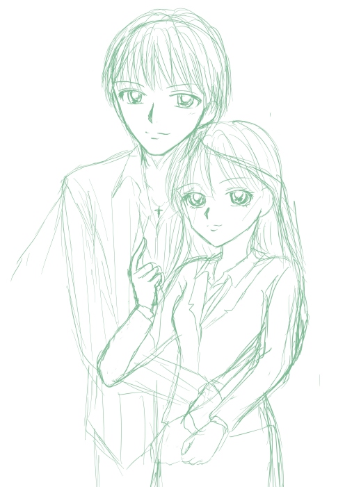 作中、瞬を男前と書いてしまったため、普段とちょっと違う描き方をしました。男前に見えるかといいのですが。あと、真希ちゃんが美人に見えるかどうかも気にかかるところです。