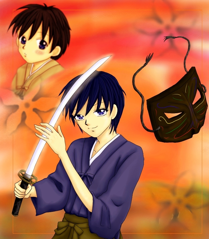 あとは、和風小説企画に、イラストとして提供した、この凪一人バージョンと、顔UPバージョン(それでも少し縮小した)を載せていますので、よろしかったら新ホームページ『美月のお城』をチェックなさってくださいませ。