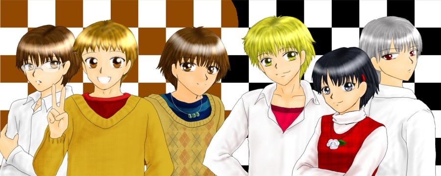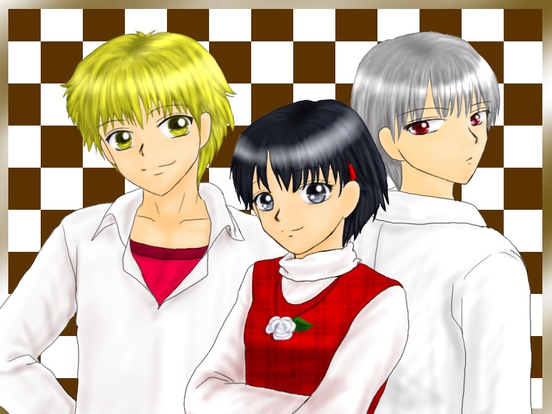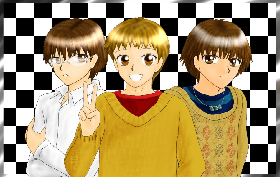 この子たちは、『ある日の話』という愛田の小説の主人公たちです。陸、海、空です。(リク。カイ。クウと読みます)名前は自衛隊のあれからつけました。三兄弟~の彼らとは全くの別人です。同じ、三つ子ですけどね。彼らはそっくり同じ顔です。中学生です。